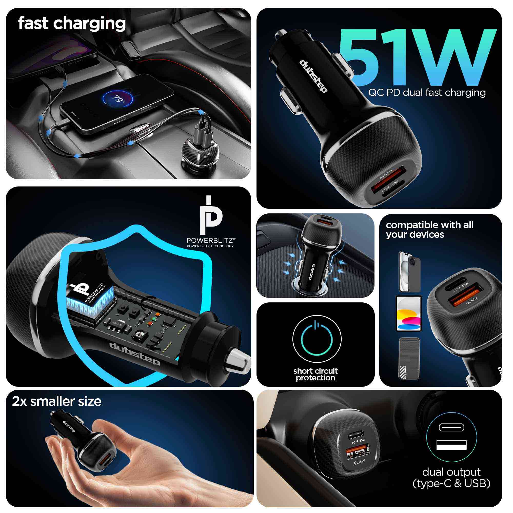 Juice up your tech devices with the dubstep zap 51W Car Charger. Engineered with Powerblitz™ tech. It's your ultimate solution for all your charging requirements.